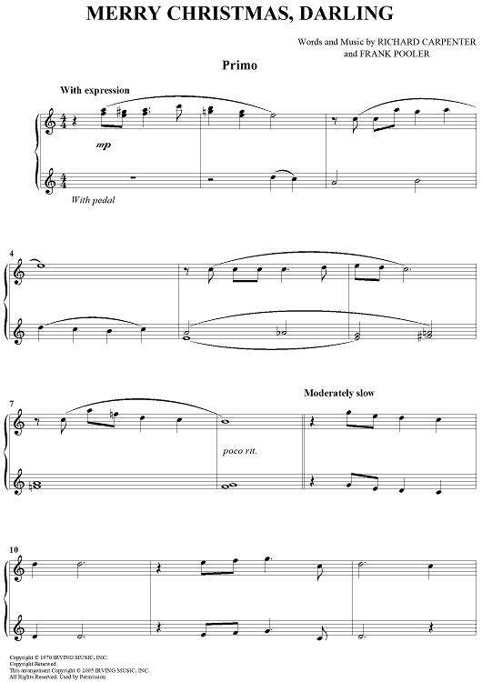 Digital Sheet Music for Merry Christmas, Darling by The Carpenters, Richard Carpenter, Frank Pooler scored for 1 Piano, 4 Hands; id:385079