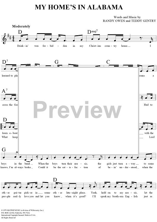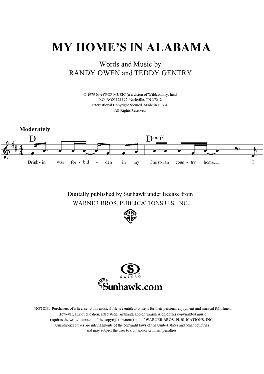 Digital Sheet Music for My Home's in Alabama by Randy Owen, Teddy Gentry, Alabama scored for Lead Sheet; id:254024
