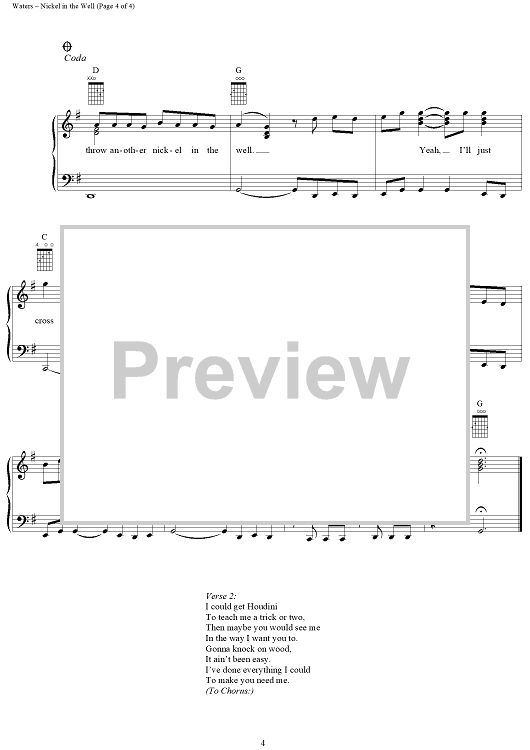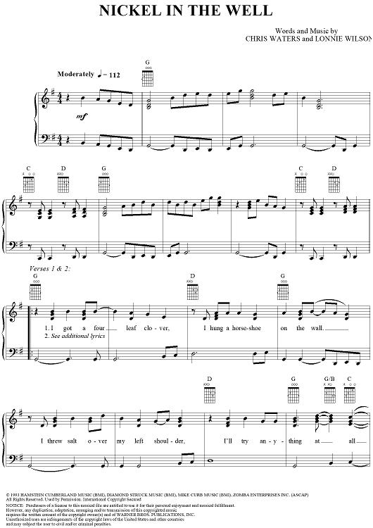 Digital Sheet Music for Nickel in the Well by Bryan White, Chris Waters, Lonnie Wilson scored for Piano/Vocal/Chords; id:124166