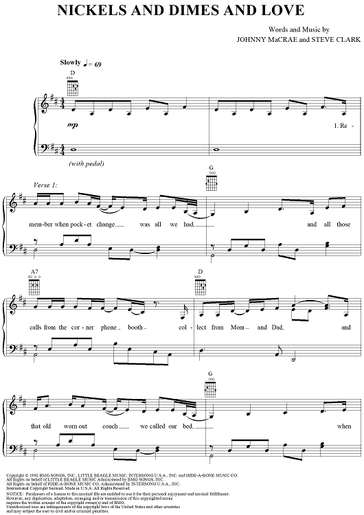 Digital Sheet Music for Nickels and Dimes and Love by John Michael Montgomery, Steve Clark, Johnny McCrae scored for Piano/Vocal/Chords; id:251620