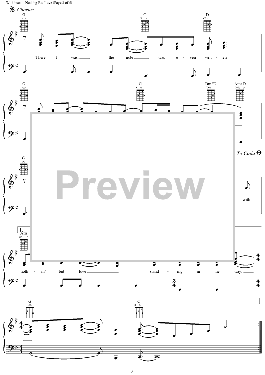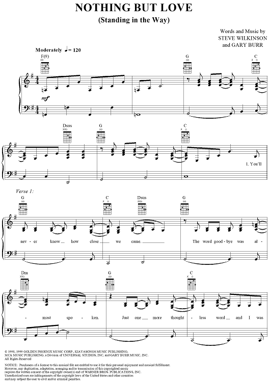 Digital Sheet Music for Nothing But Love (Standing In The Way) by Gary Burr, Steve Wilkinson, The Wilkinsons scored for Piano/Vocal/Chords; id:241151