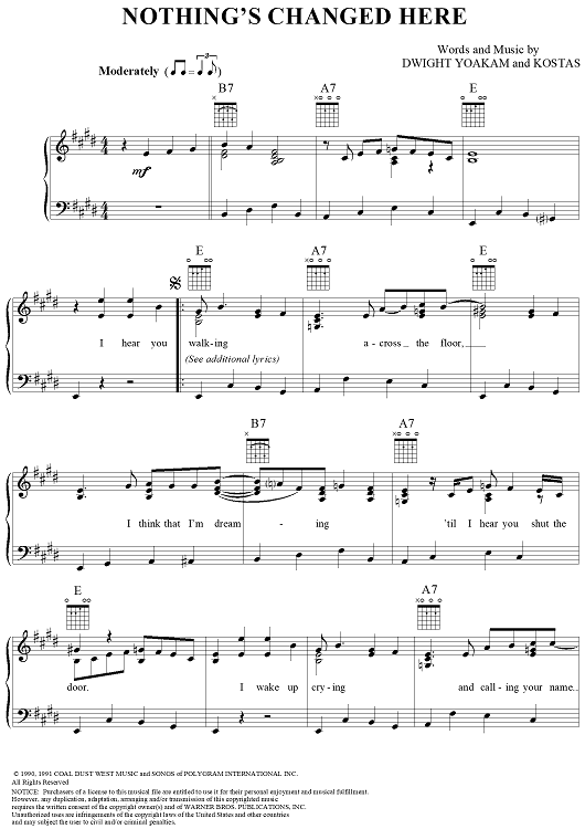 Digital Sheet Music for Nothing's Changed Here by Kostas, Dwight Yoakam scored for Piano/Vocal/Chords; id:262704