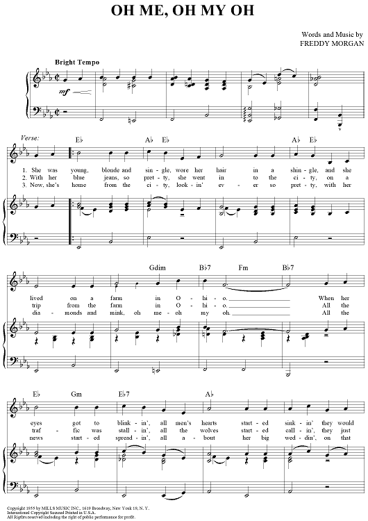 Digital Sheet Music for Oh Me, Oh My Oh by Freddy Morgan scored for Piano/Vocal/Chords; id:427401