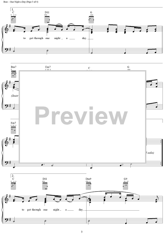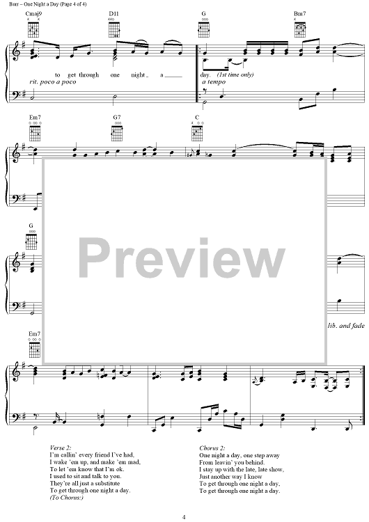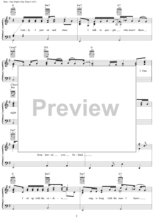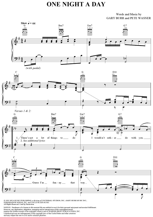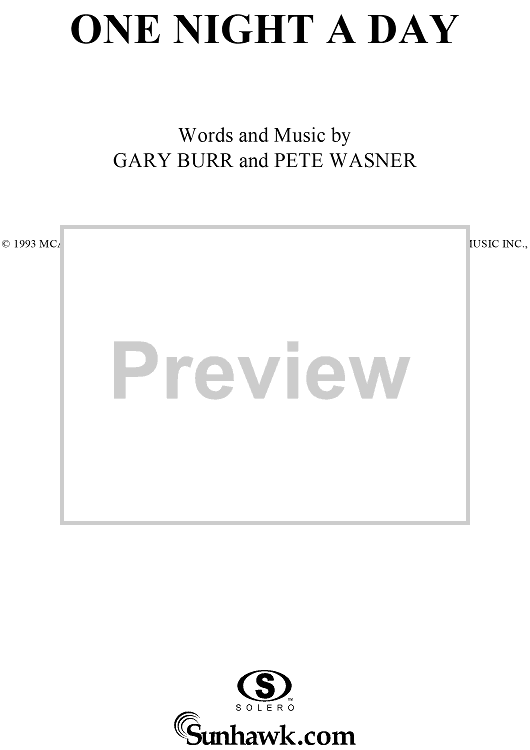Digital Sheet Music for One Night a Day by Garth Brooks, Gary Burr, Pete Wasner scored for Piano/Vocal/Chords; id:273642