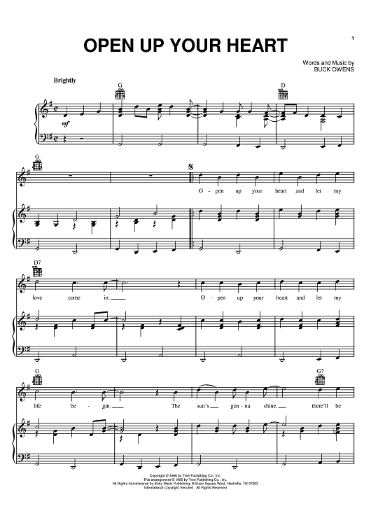 Digital Sheet Music for Open Up Your Heart by Buck Owens scored for Piano/Vocal/Chords; id:386529