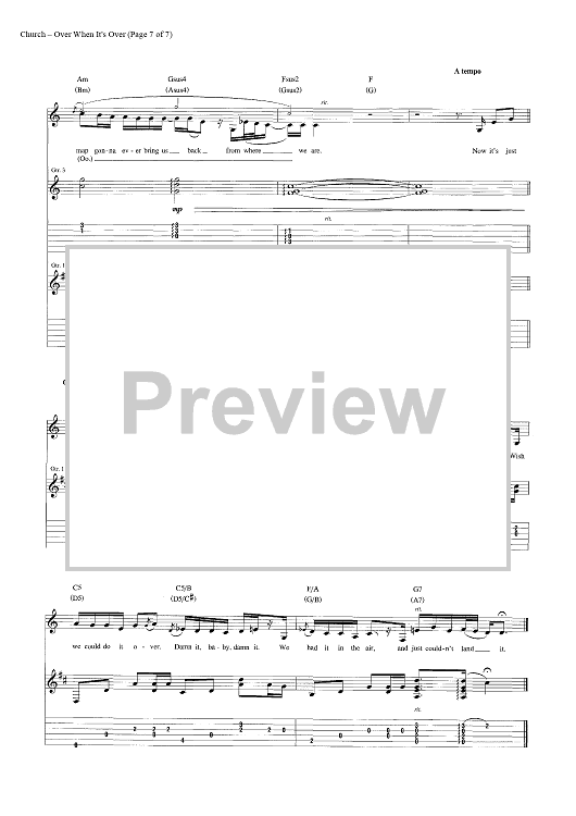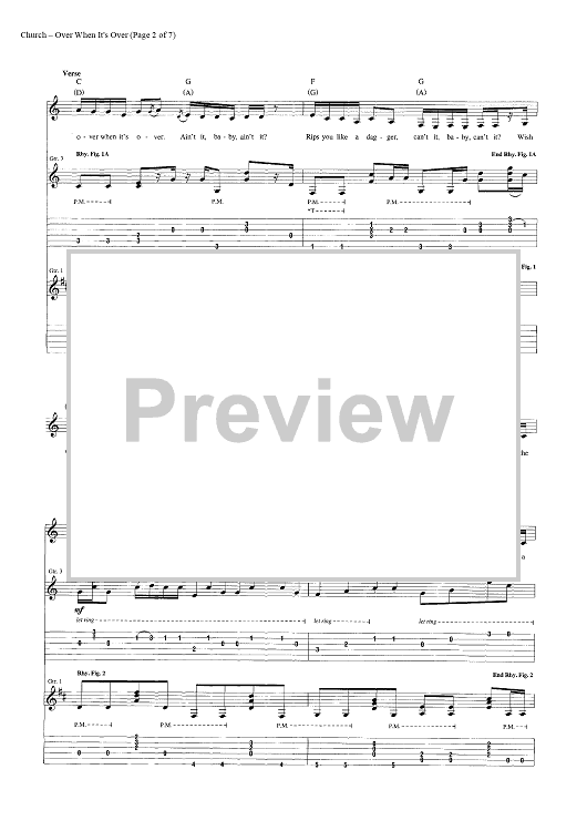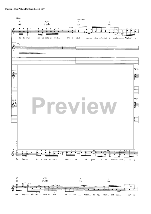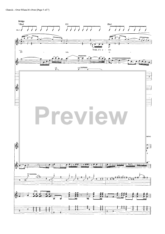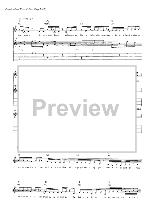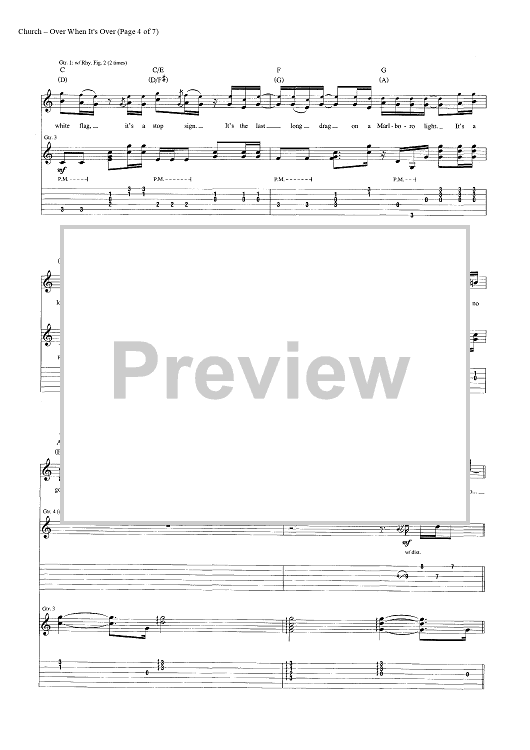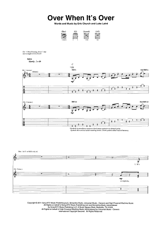 Digital Sheet Music for Over When It's Over by Luke Laird, Eric Church scored for Guitar Tab/Vocal/Chords; id:446970