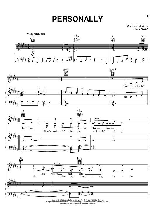 Digital Sheet Music for Personally by Paul Kelly, Ronnie McDowell scored for Piano/Vocal/Chords; id:386530