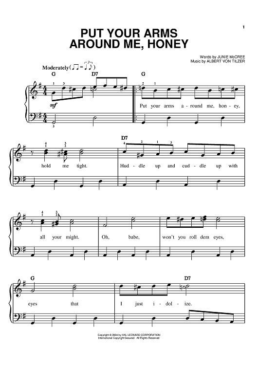 Digital Sheet Music for Put Your Arms Around Me, Honey by Albert von Tilzer, Junie McCree, Blossom Seely scored for Easy Piano; id:373865