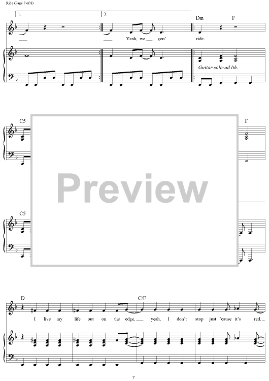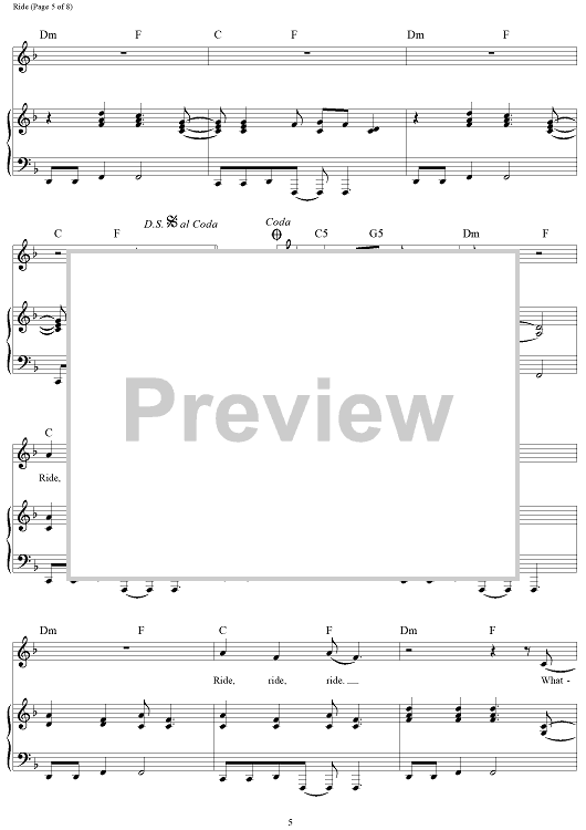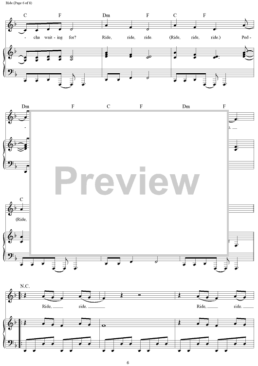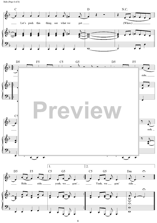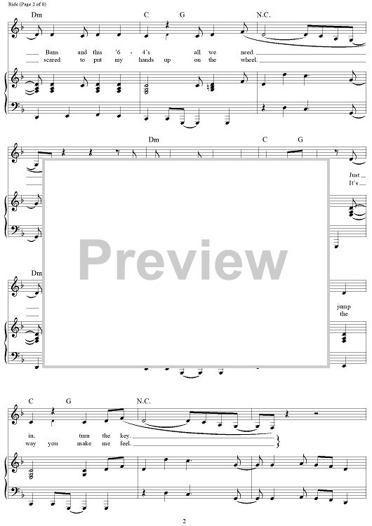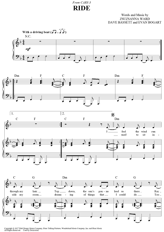 Digital Sheet Music for Ride - from Cars 3 by Dave Bassett, Brad Paisley, Evan Bogart, Zsuzsanna Ward scored for Piano/Vocal/Chords; id:464690