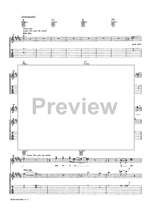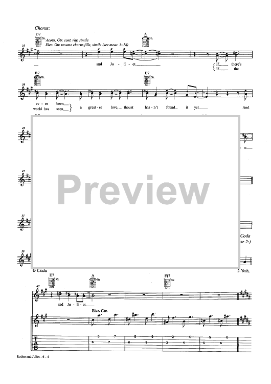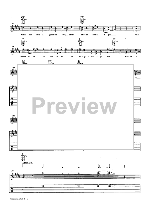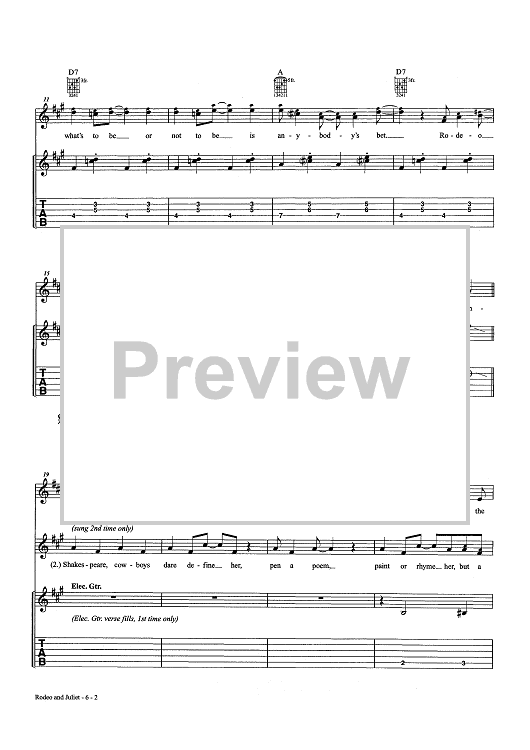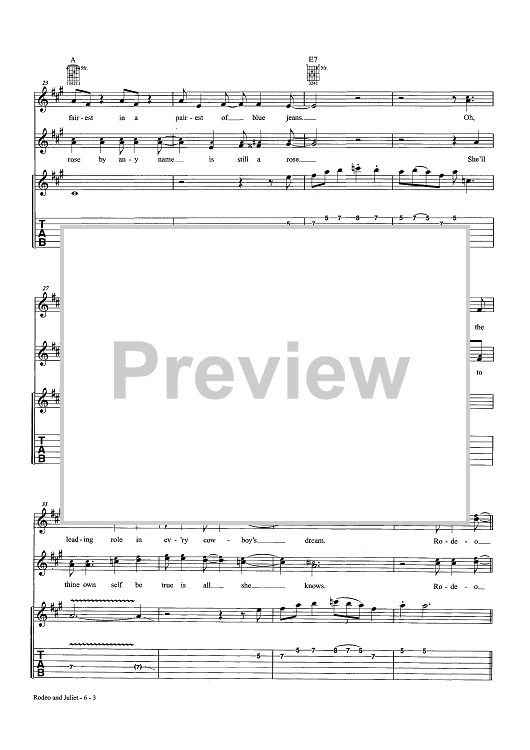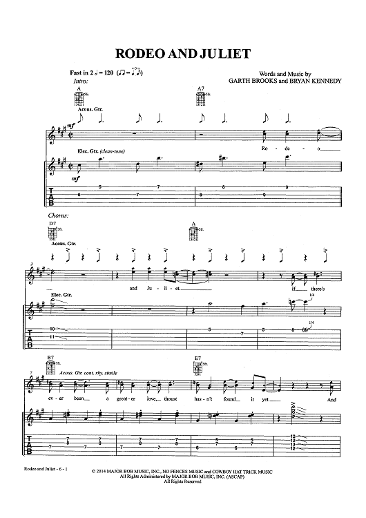 Digital Sheet Music for Rodeo and Juliet by Chris Gaines, Bryan Kennedy scored for Guitar Tab/Vocal/Chords; id:457164