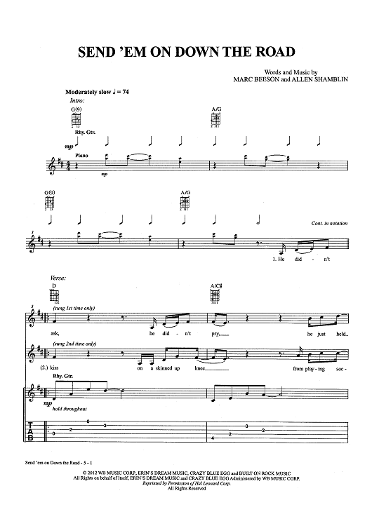 Digital Sheet Music for Send 'Em On Down the Road by Allen Shamblin, Chris Gaines, Marc Beeson scored for Guitar Tab/Vocal/Chords; id:457165