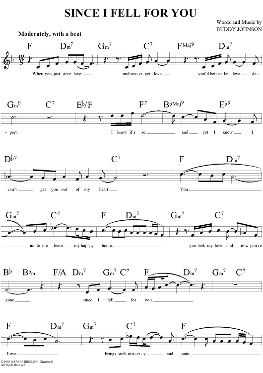 Digital Sheet Music for Since I Fell For You by Charlie Rich, Buddy Johnson scored for Lead Sheet; id:111995