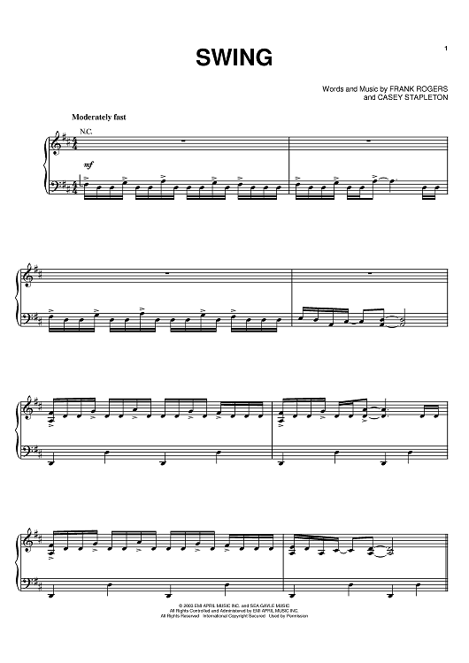 Digital Sheet Music for Swing by Trace Adkins, Frank Rogers, Casey Stapleton scored for Piano/Vocal/Chords; id:392844