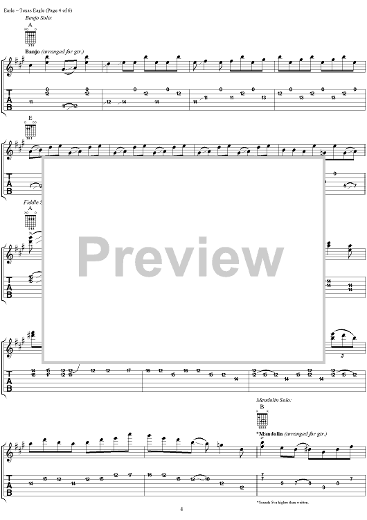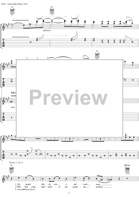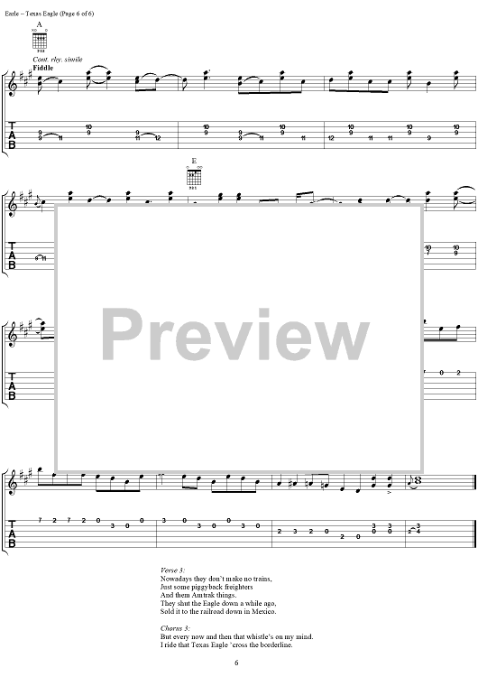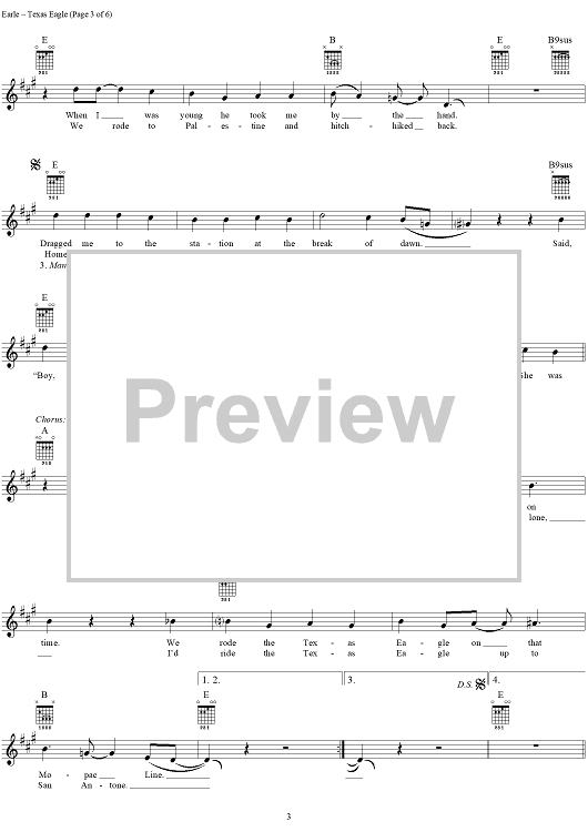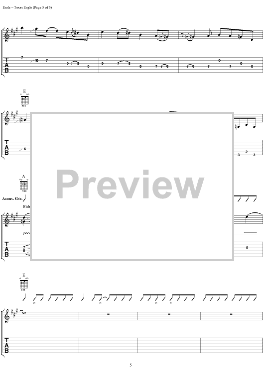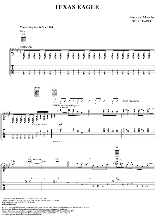 "Texas Eagle" Sheet Music by Steve Earle