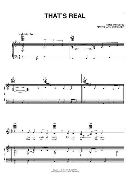 Digital Sheet Music for That's Real by Mary Chapin Carpenter scored for Piano/Vocal/Chords; id:395964