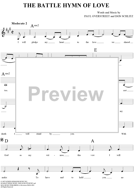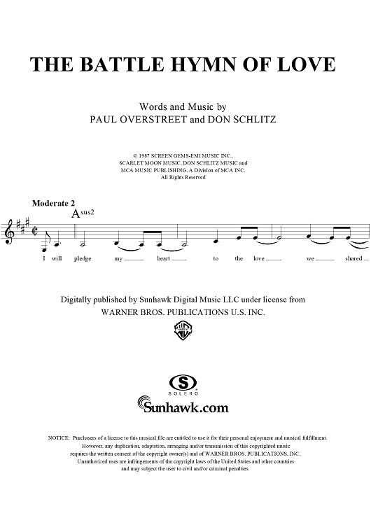 Digital Sheet Music for The Battle Hymn Of Love by Don Schlitz, Tim O'Brien, Kathy Mattea, Paul Overstreet scored for Lead Sheet; id:253813