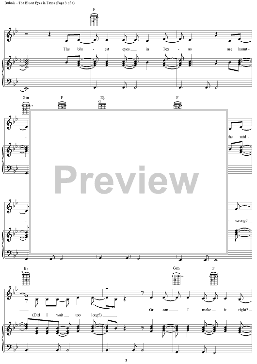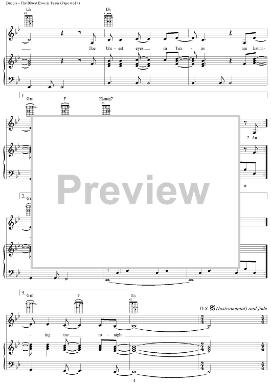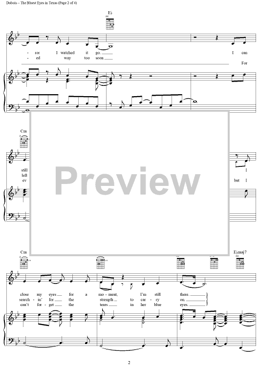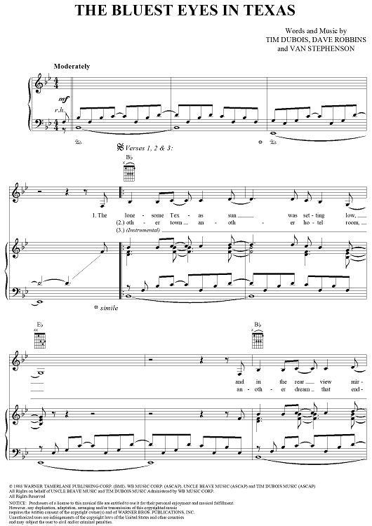 Digital Sheet Music for The Bluest Eyes in Texas by Van Stephenson, Tim Dubois, Dave Robbins scored for Piano/Vocal/Chords; id:286058