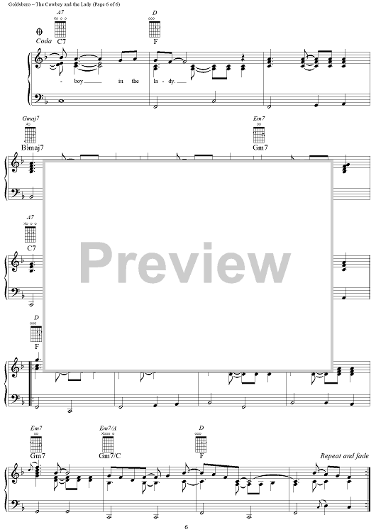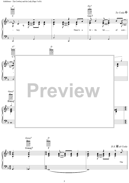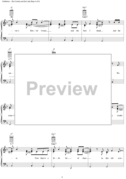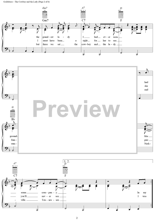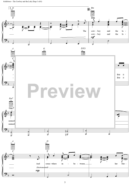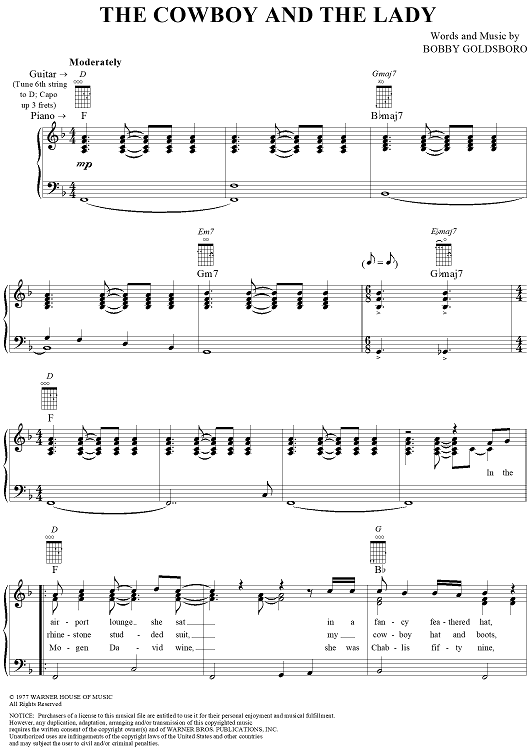 Digital Sheet Music for The Cowboy and the Lady by Taffy Nivert, Bobby Goldsboro scored for Piano/Vocal/Chords; id:201445