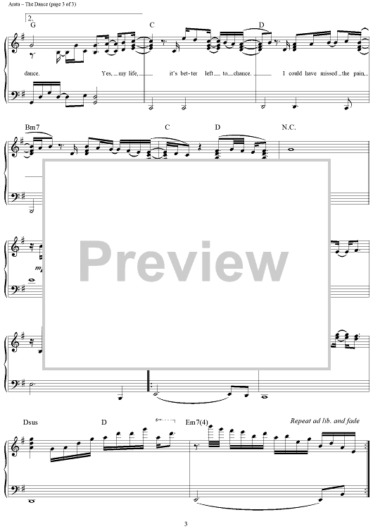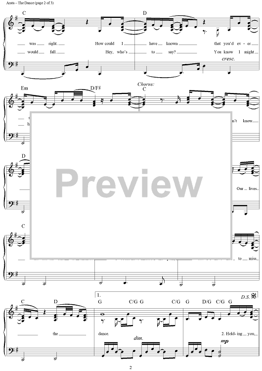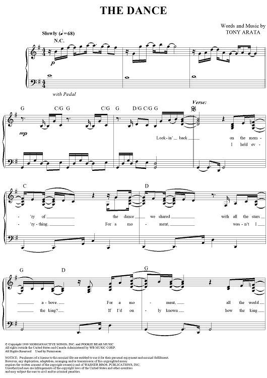 Digital Sheet Music for The Dance by Garth Brooks, Tony Arata scored for Piano/Vocal/Chords; id:109359