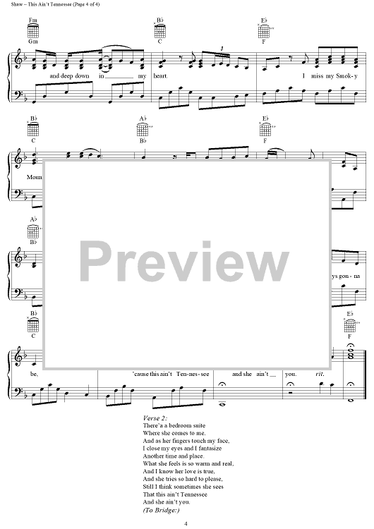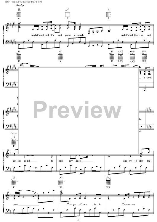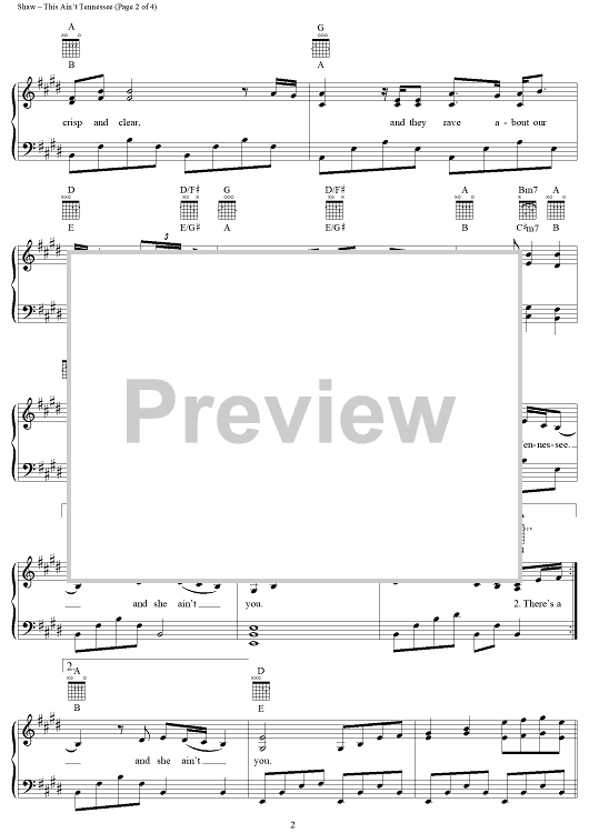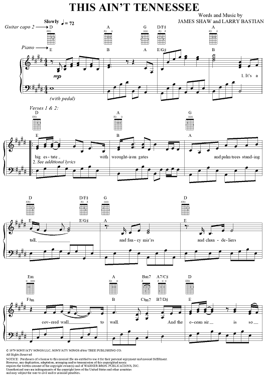 Digital Sheet Music for This Ain't Tennessee by Garth Brooks, Larry B. Bastian, James Shaw scored for Piano/Vocal/Chords; id:257585