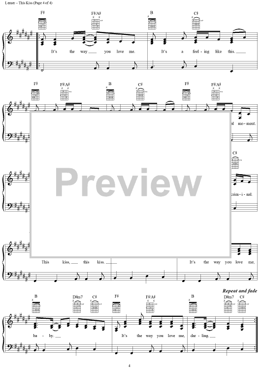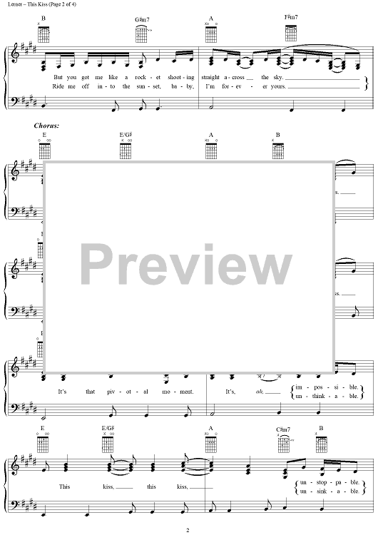Digital Sheet Music for This Kiss by Faith Hill, Beth Nielsen Chapman, Robin Lerner, Annie Roboff scored for Piano/Vocal/Chords; id:109580
