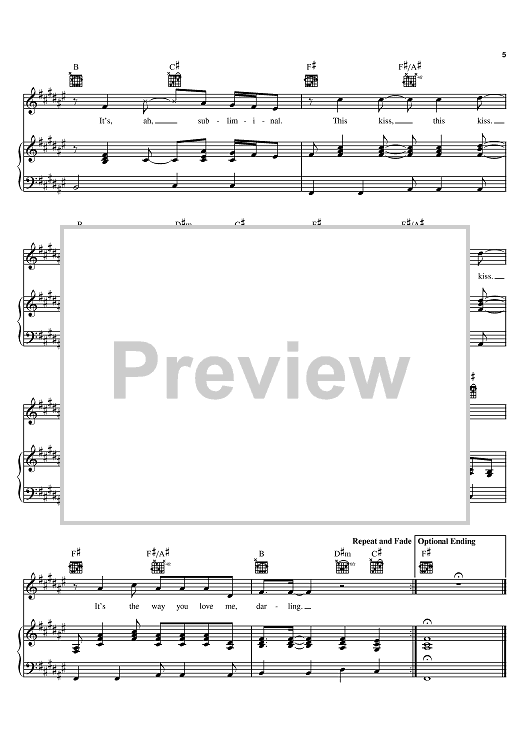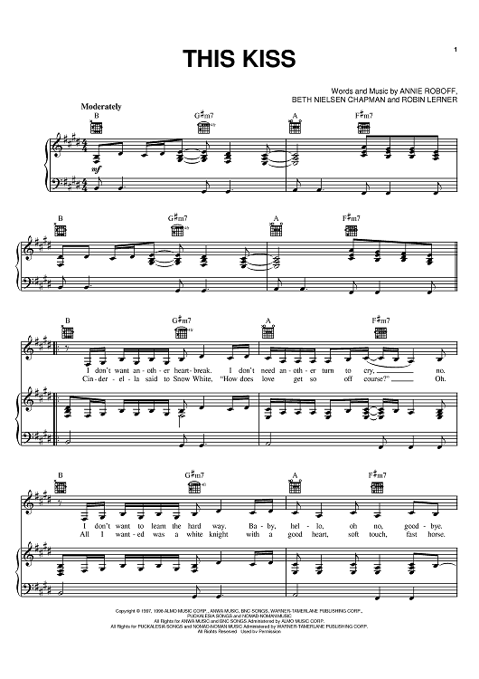 Digital Sheet Music for This Kiss by Faith Hill, Beth Nielsen Chapman, Robin Lerner, Annie Roboff scored for Piano/Vocal/Chords; id:383709