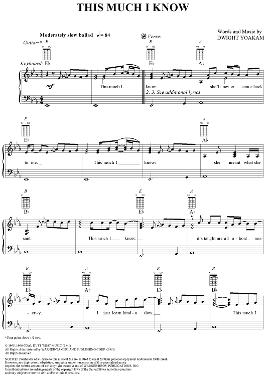 Digital Sheet Music for This Much I Know by Dwight Yoakam scored for Piano/Vocal/Chords; id:262875