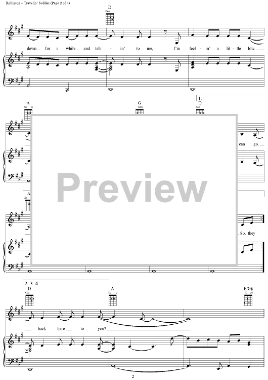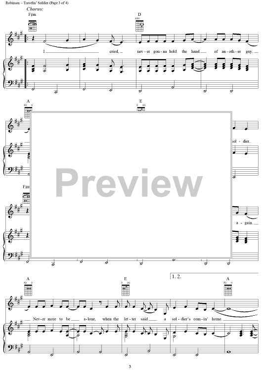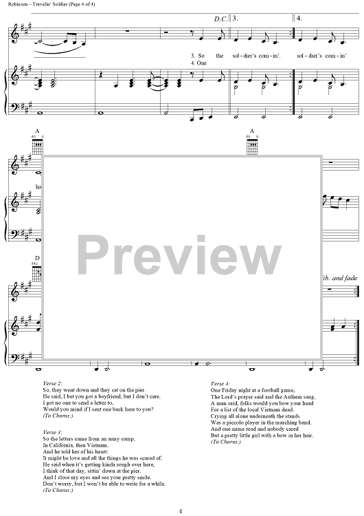 Digital Sheet Music for Travelin' Soldier by The Chicks, Bruce Robinson scored for Piano/Vocal/Chords; id:293475