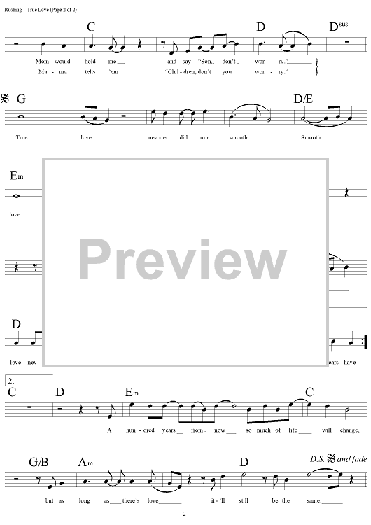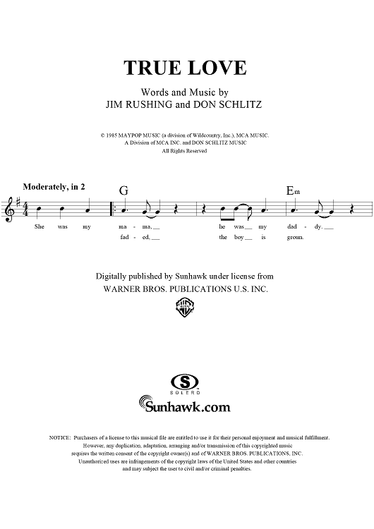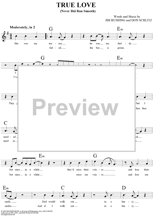 Digital Sheet Music for True Love (Never Did Run Smooth) by Don Schlitz, Jim Rushing, Tom Wopat scored for Lead Sheet; id:256268
