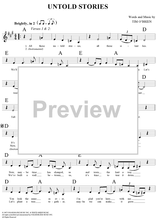 Digital Sheet Music for Untold Stories by Tim O'Brien, Kathy Mattea scored for Lead Sheet; id:253686