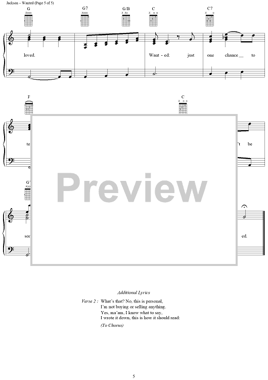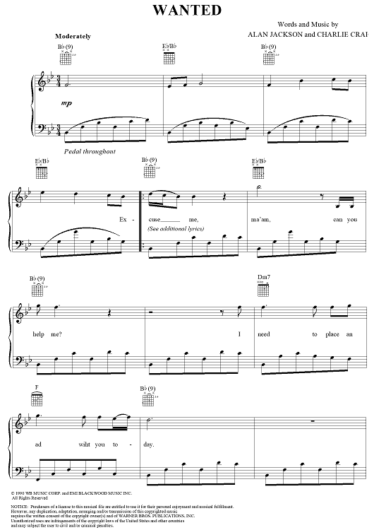 Digital Sheet Music for Wanted by Charlie Craig, Al Jackson Jr scored for Piano/Vocal/Chords; id:265690