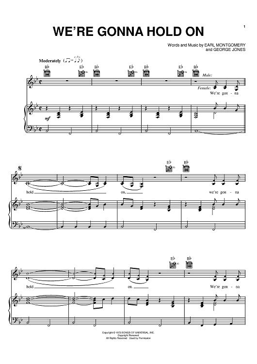 Digital Sheet Music for We're Gonna Hold On by Tammy Wynette, George Jones, Earl Montgomery scored for Piano/Vocal/Chords; id:385801