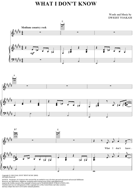 Digital Sheet Music for What I Don't Know by Dwight Yoakam scored for Piano/Vocal/Chords; id:262802