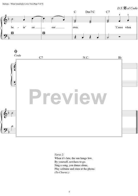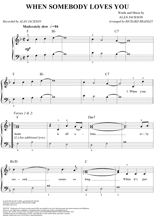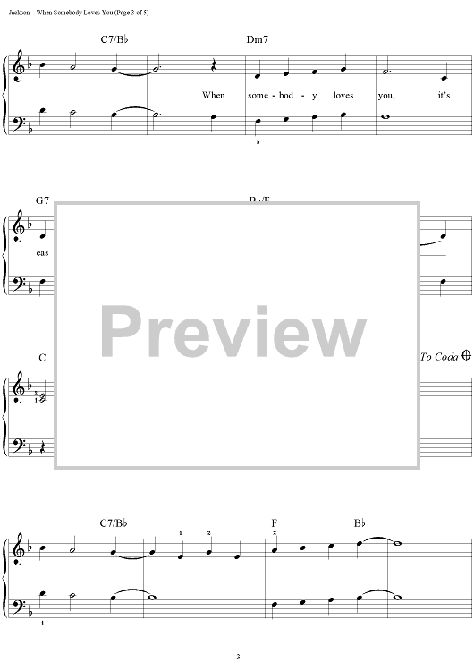 Digital Sheet Music for When Somebody Loves You by Richard Bradley, Al Jackson Jr scored for Easy Piano/Vocal; id:284528