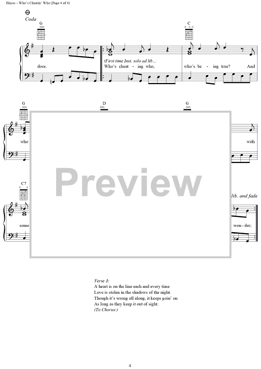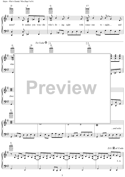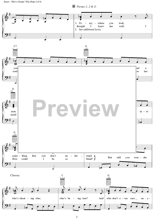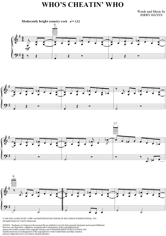 Digital Sheet Music for Who's Cheatin' Who? by Jerry Hayes, Al Jackson Jr scored for Piano/Vocal/Chords; id:201411