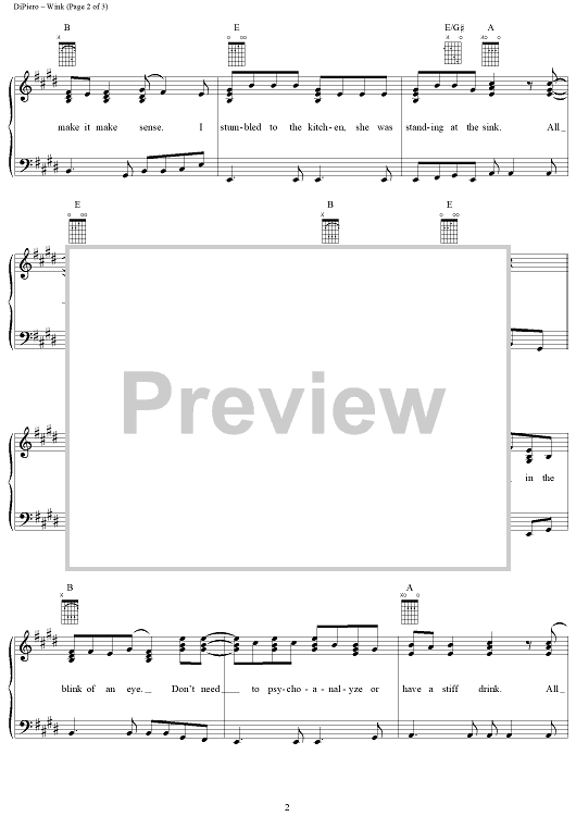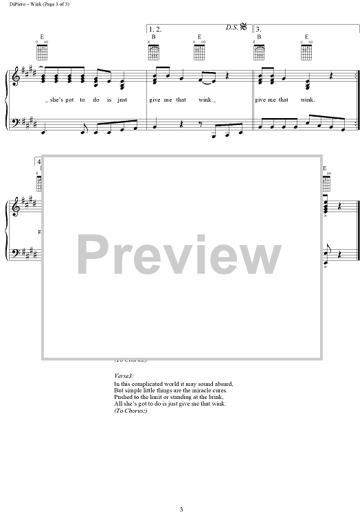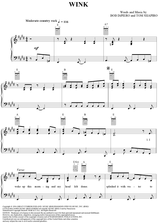 Digital Sheet Music for Wink by Bob DiPiero, Neal McCoy, Tom Shapiro scored for Piano/Vocal/Chords; id:271341