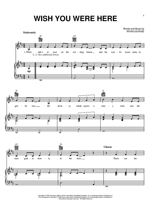 Digital Sheet Music for Wish You Were Here by Barbara Mandrell, Kye Fleming, Dennis Morgan scored for Piano/Vocal/Chords; id:383821