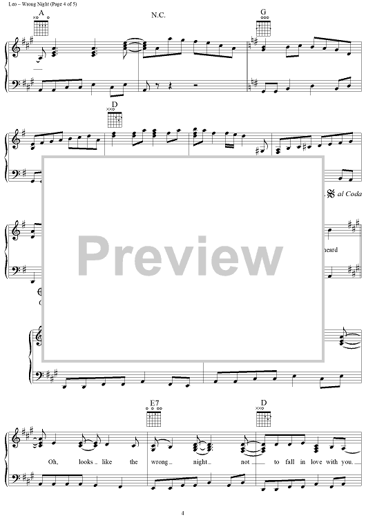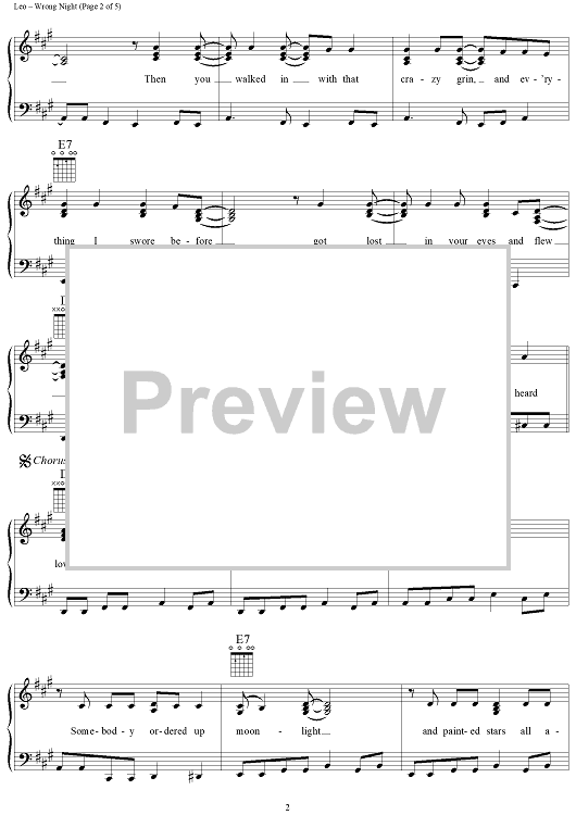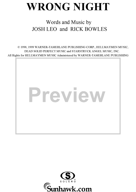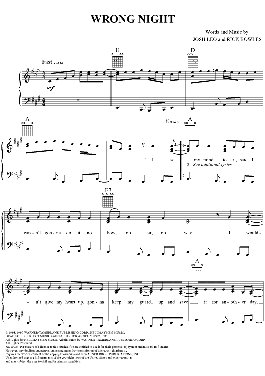 Digital Sheet Music for Wrong Night by Reba McEntire, Rick Bowles, Josh Leo scored for Piano/Vocal/Chords; id:112721