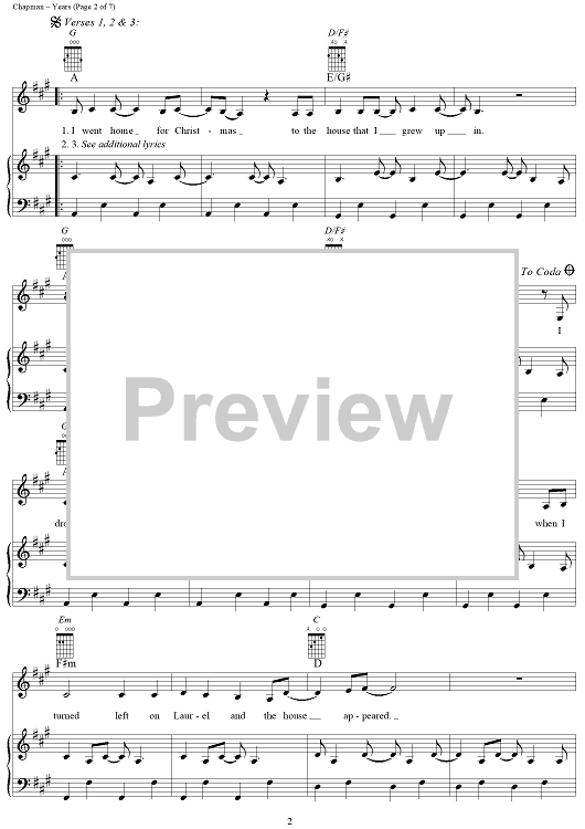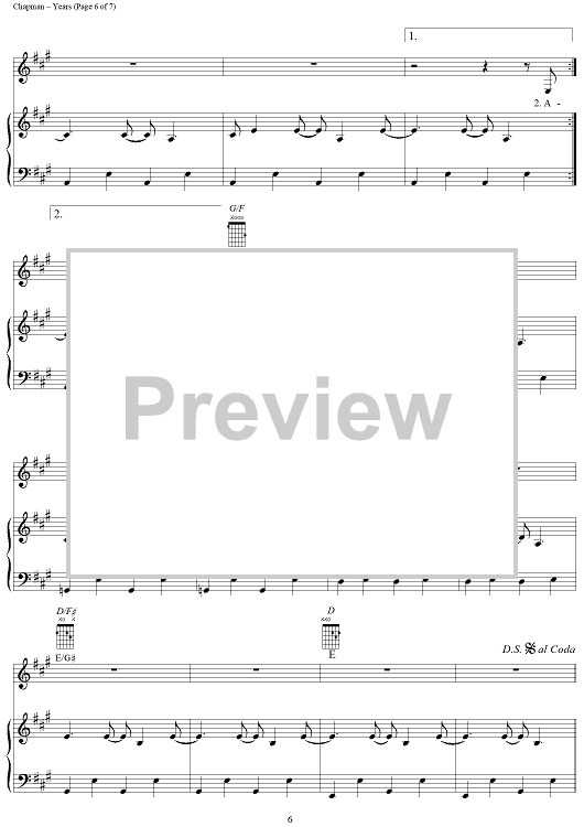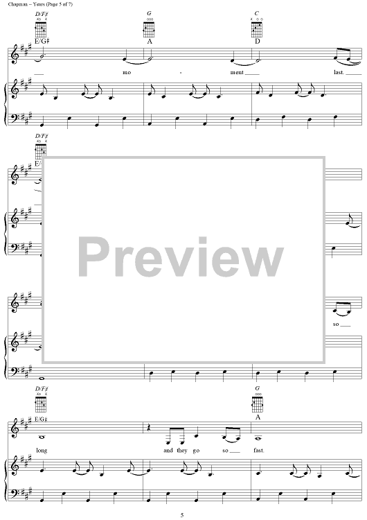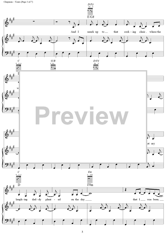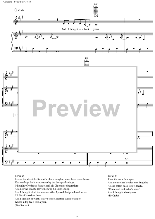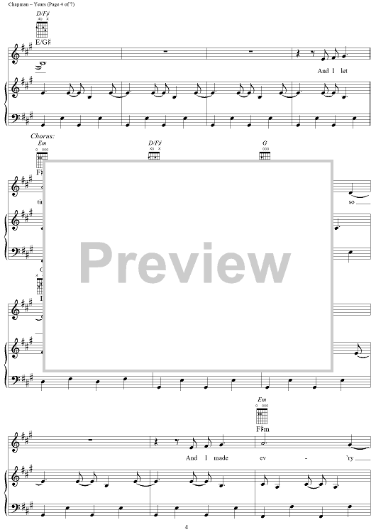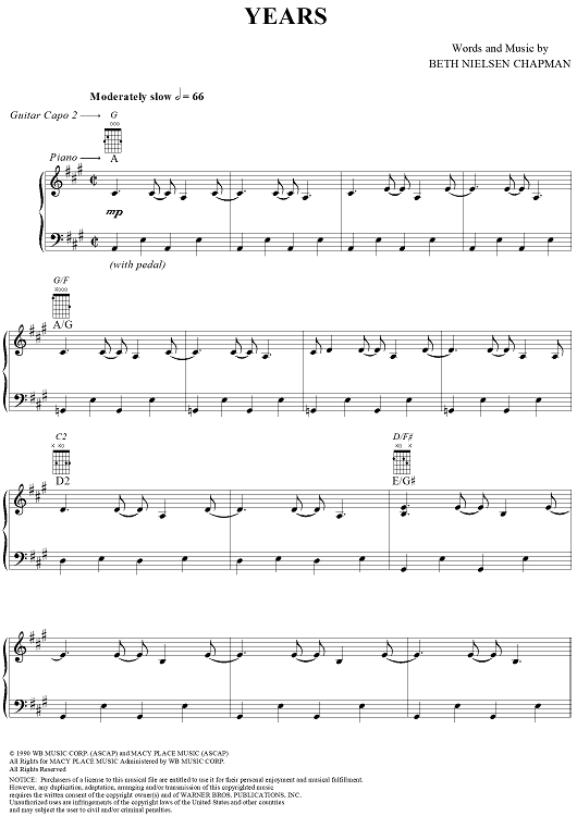 Digital Sheet Music for Years by Beth Nielsen Chapman scored for Piano/Vocal/Chords; id:203748