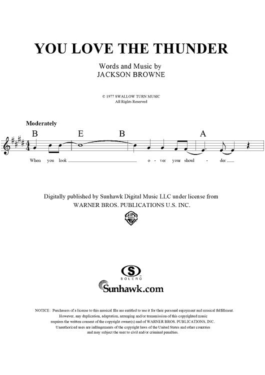Digital Sheet Music for You Love the Thunder by Jackson Browne, Hank Williams, Jr. scored for Lead Sheet; id:273798