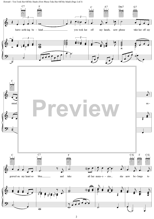 Digital Sheet Music for You Took Her Off My Hands (Now Please Take Her Off My Mind) by Harlan Howard, Ronnie Milsap, Wynn Stewart, Skeets McDonald scored for Piano/Vocal/Chords; id:266336