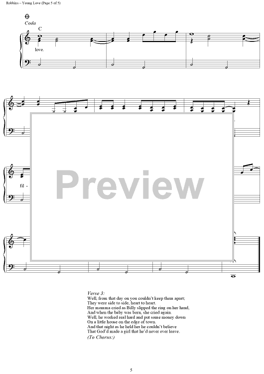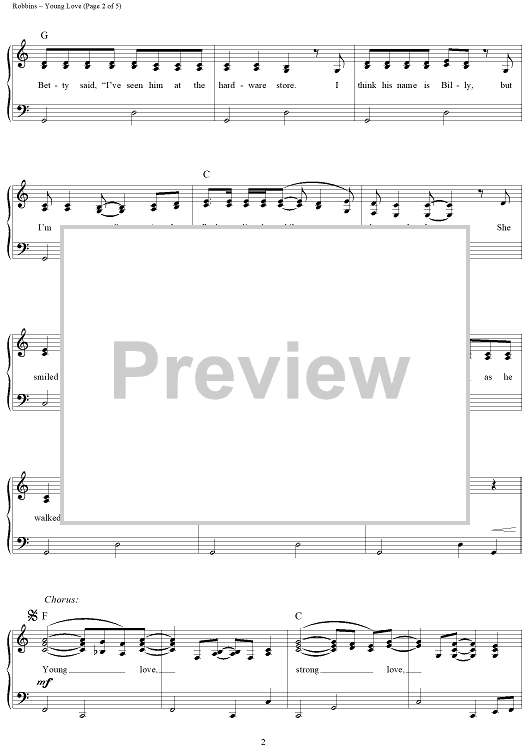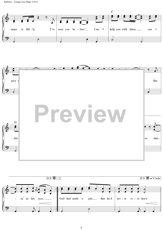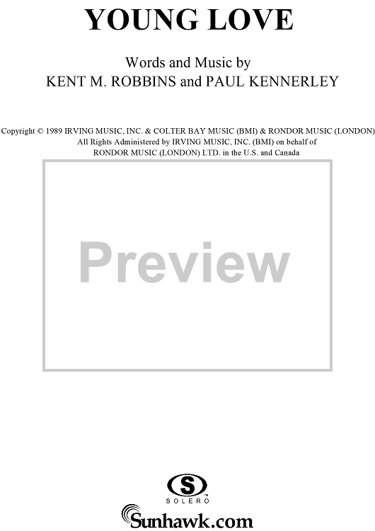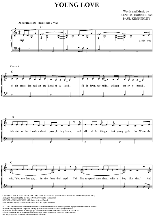 Digital Sheet Music for Young Love by Kent M. Robbins, Paul Kennerley, The Judds scored for Piano/Vocal/Chords; id:117904