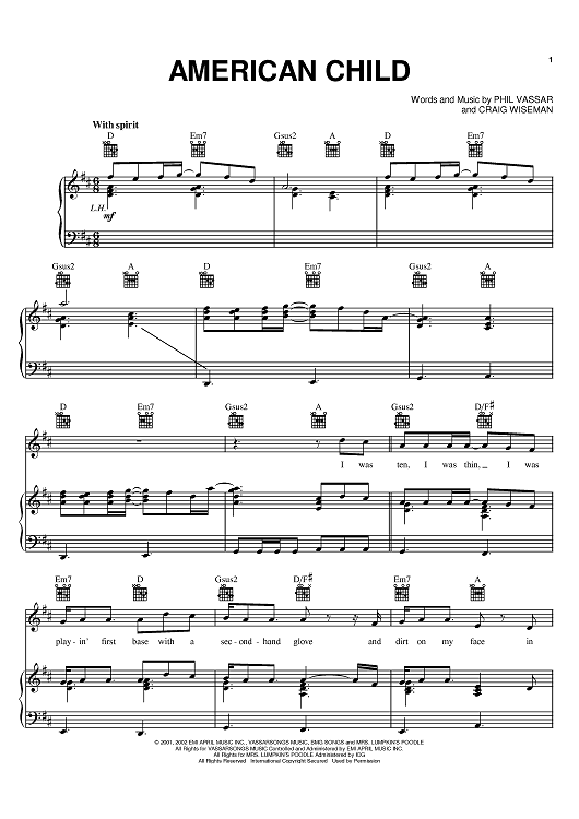Digital Sheet Music for American Child by Craig Wiseman, Phil Vassar scored for Piano/Vocal/Chords; id:369089
