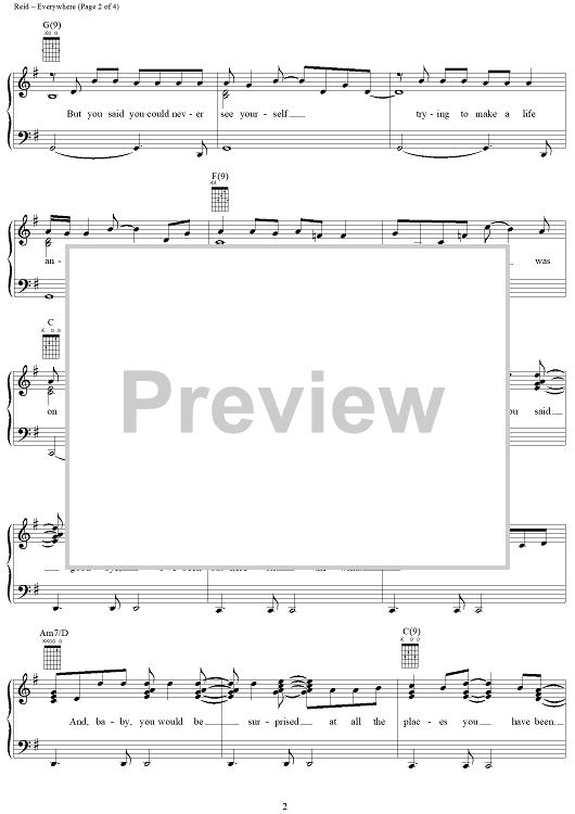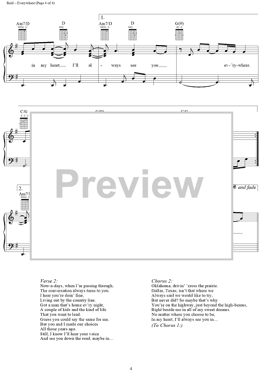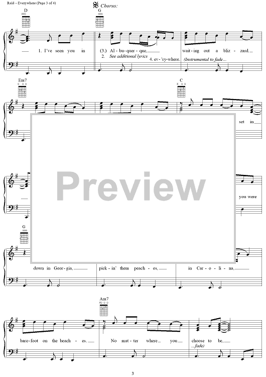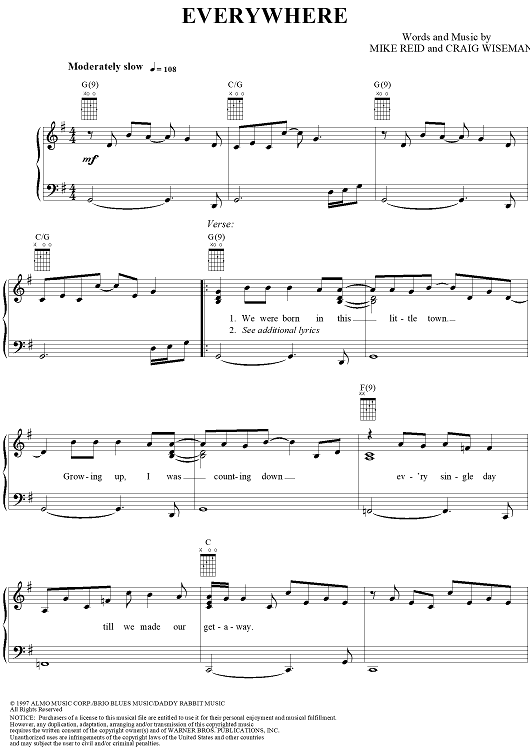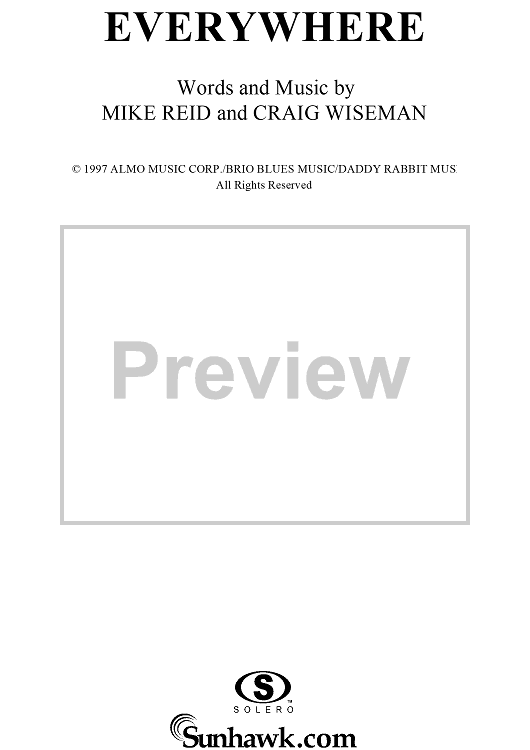 Digital Sheet Music for Everywhere by Tim McGraw, Craig Wiseman, Mike Reid scored for Piano/Vocal/Chords; id:112022