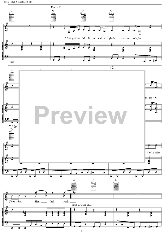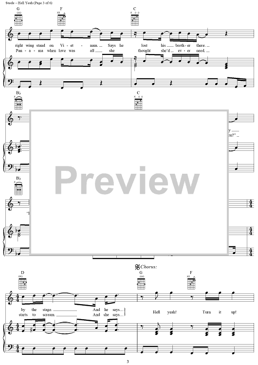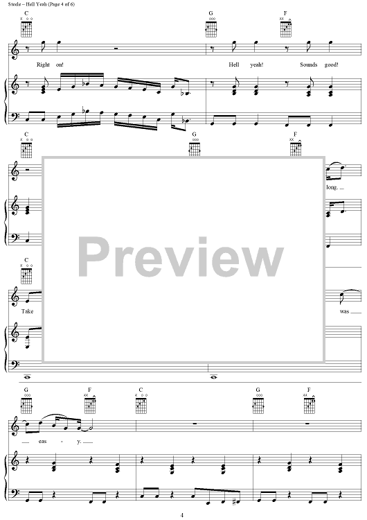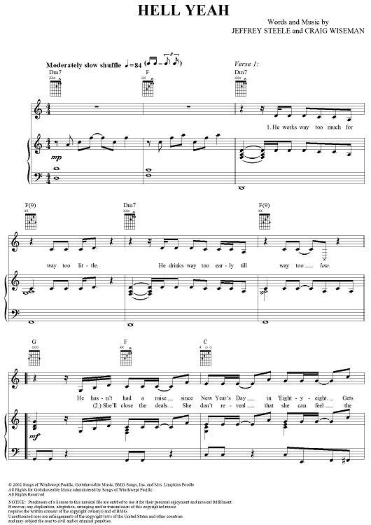 Digital Sheet Music for Hell Yeah by Craig Wiseman, Jeffrey Steele, Montgomery Gentry scored for Piano/Vocal/Chords; id:303052