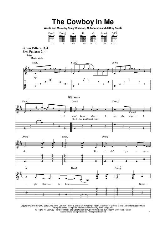 Digital Sheet Music for The Cowboy In Me by Tim McGraw, Craig Wiseman, Jeffrey Steele, Al Anderson scored for Easy Guitar Tab; id:370786