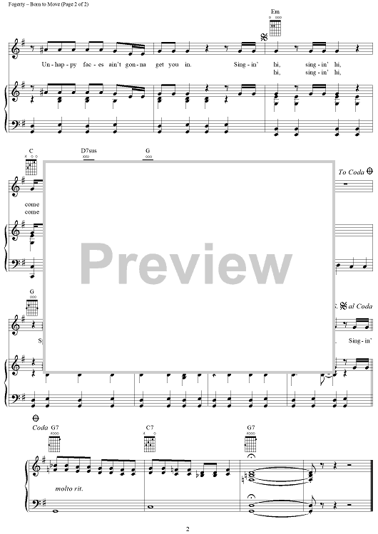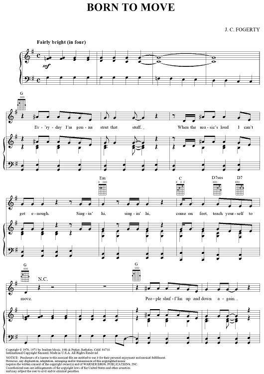 Digital Sheet Music for Born to Move by John Fogerty, Creedence Clearwater Revival scored for Piano/Vocal/Chords; id:269457