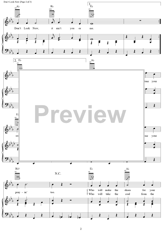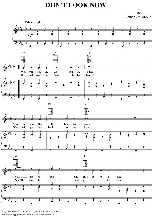 Digital Sheet Music for Don't Look Now by John Fogerty, Creedence Clearwater Revival scored for Piano/Vocal/Chords; id:241797