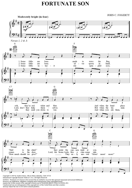 "Fortunate Son" Sheet Music by Creedence Clearwater Revival