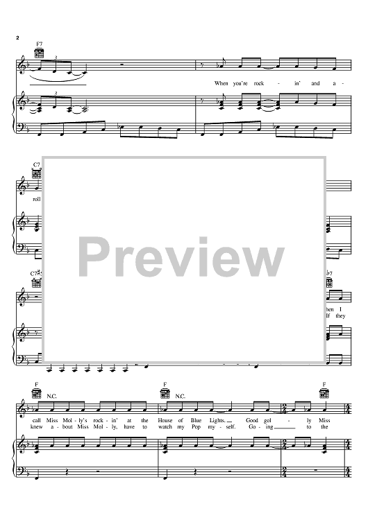 Digital Sheet Music for Good Golly Miss Molly by Robert Blackwell, Little Richard, Jerry Lee Lewis, Creedence Clearwater Revival, John S. Marascalco scored for Piano/Vocal/Chords; id:390174